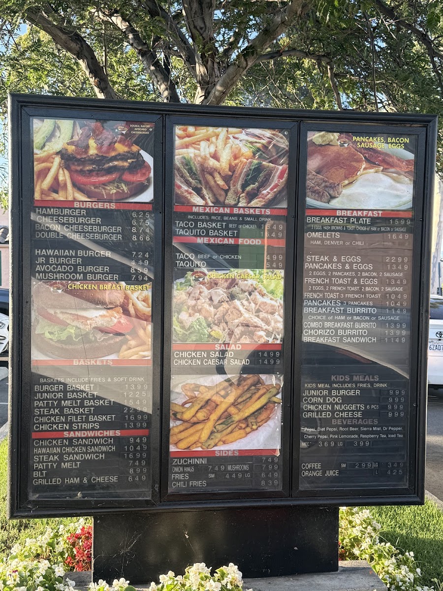 The menu at Burger Basket Corona features a variety of American-style fast food options primarily centered around hamburgers and classic diner offerings. It is organized into several groups, including burgers, sides, and beverages, catering to different meal preferences such as breakfast, lunch, or casual dining.